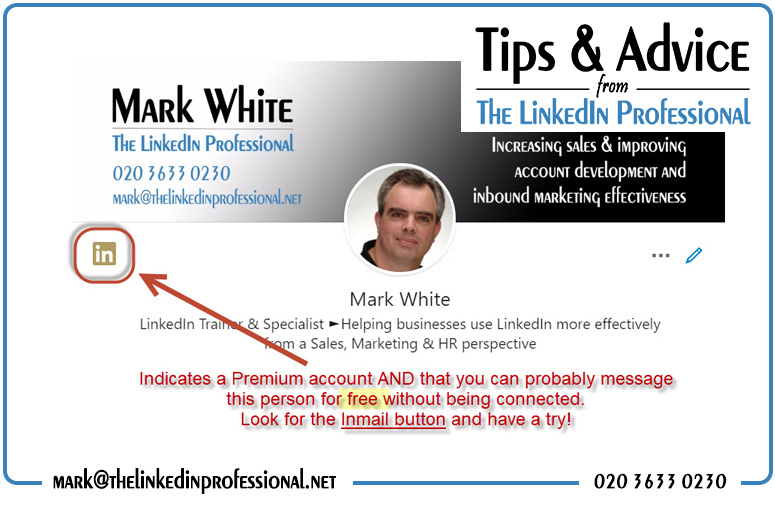 In most cases, when you see that someone has a premium account (and that’s usually indicated by the gold coloured IN symbol), then the likelihood is that you will able to message them for free even if you are not connected. Essentially, they have paid to be able to receive an Inmail message which is free of charge to the sender.